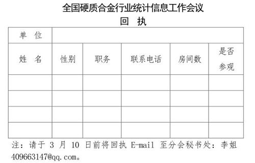 附件、全國硬質(zhì)合金行業(yè)統(tǒng)計信息工作會議回執(zhí)
