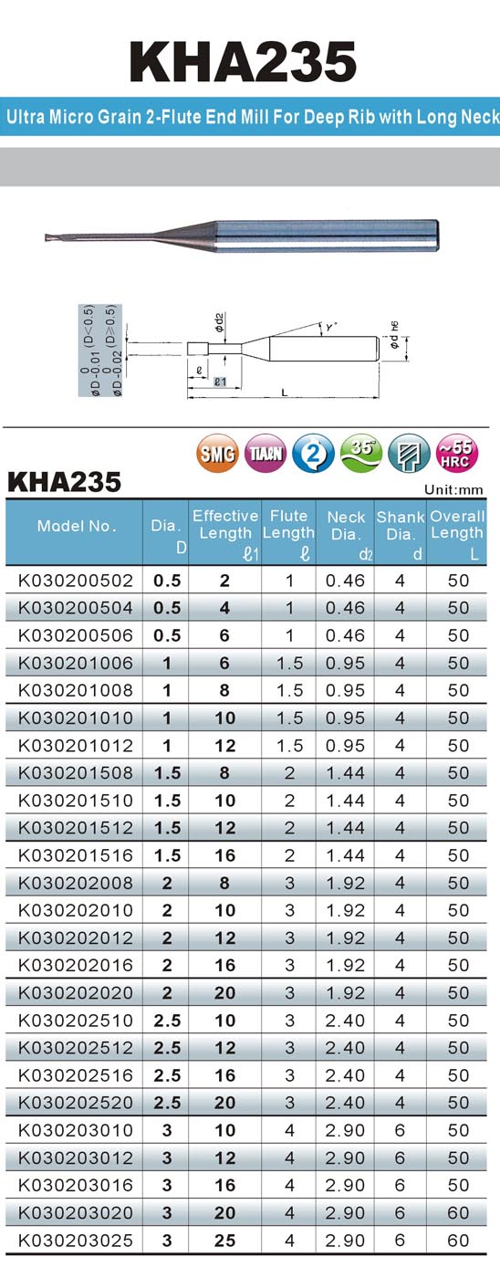 德國KHC進(jìn)口2刃深溝鎢鋼銑刀 KHA235在線留言